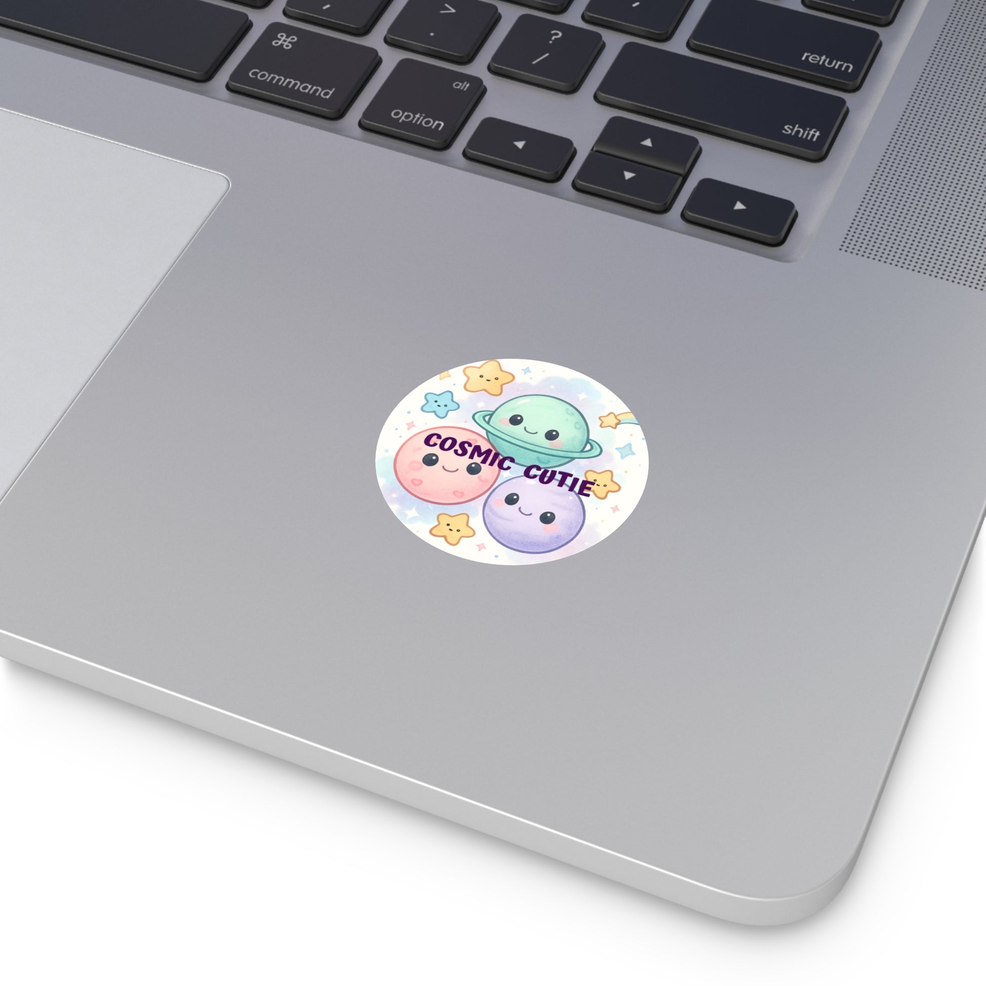 Cosmic Cutie Round Vinyl Sticker — Kawaii Planets & Stars