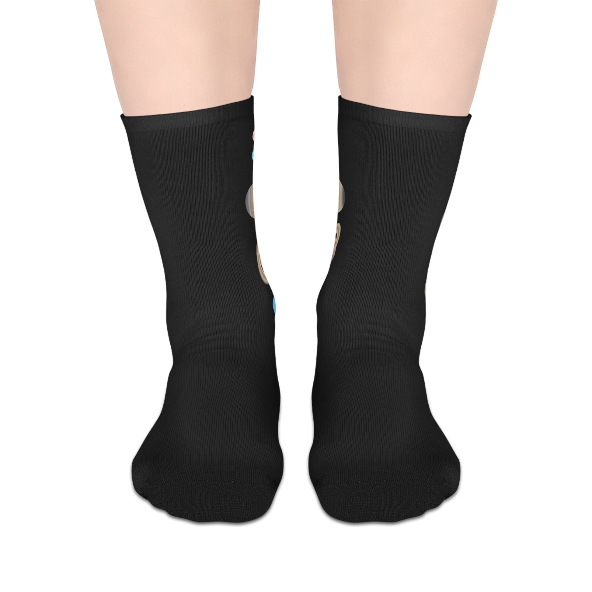 Cute Planets Mid-Length Socks — Cozy Black Socks with Planets Design