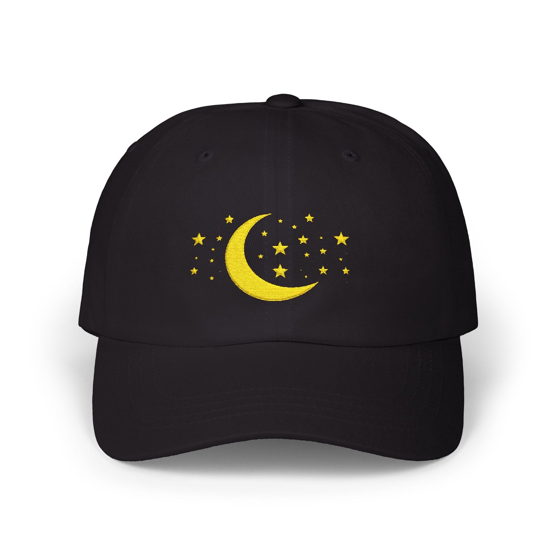 Moon & Stars Cap — Embroidered Yellow Crescent Hat